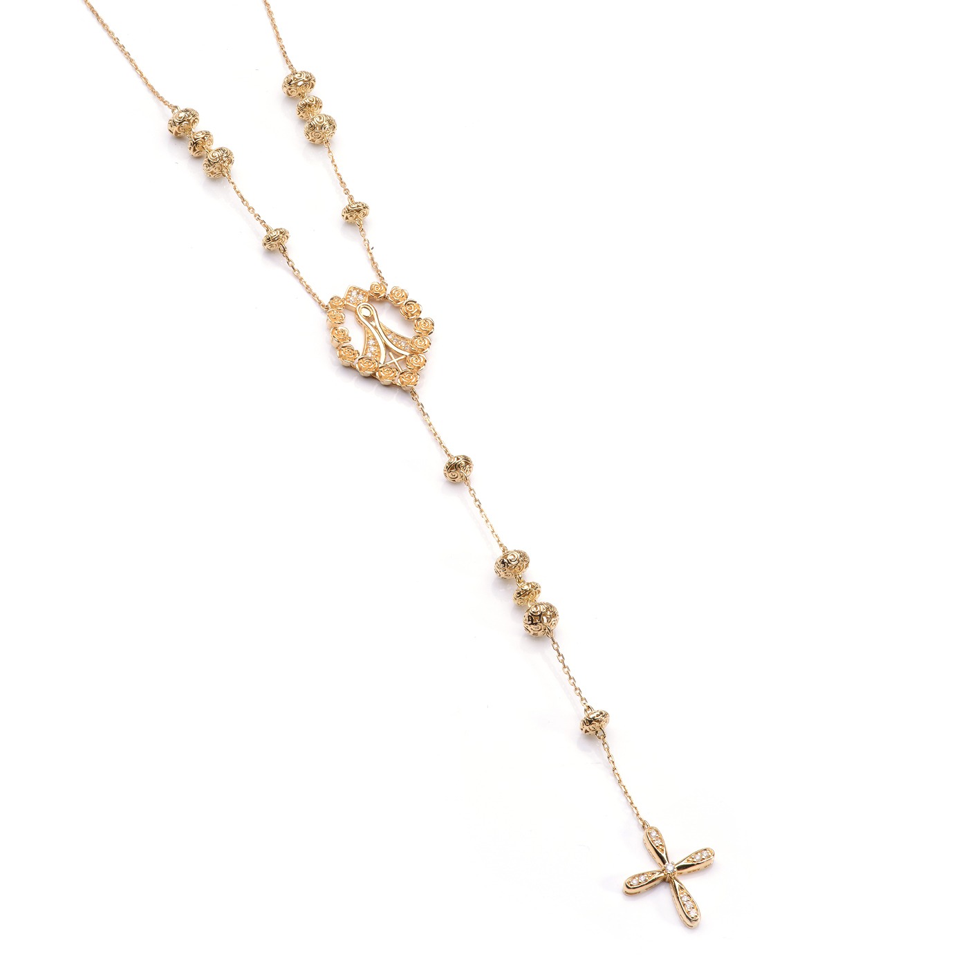 Colar Crucifixo com franjas maleáveis em Ouro Amarelo e Diamantes 0,09 CTS